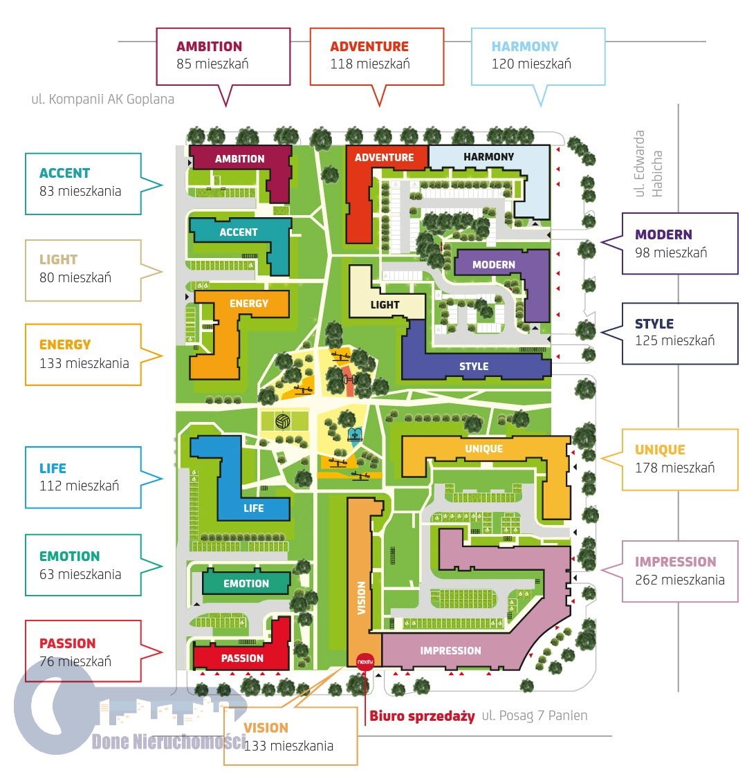 Next Ursus to osiedle developera N11 zlokalizowane się przy ulicy Posag 7 Panien składające się z 14 nowoczesnych budynków.