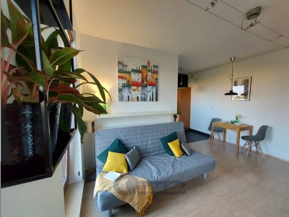 Funkcjonalny rozkład pomieszczeń - podział na część dzienną z salonem i kuchnią w aneksie oraz część prywatno-sypialnianą.