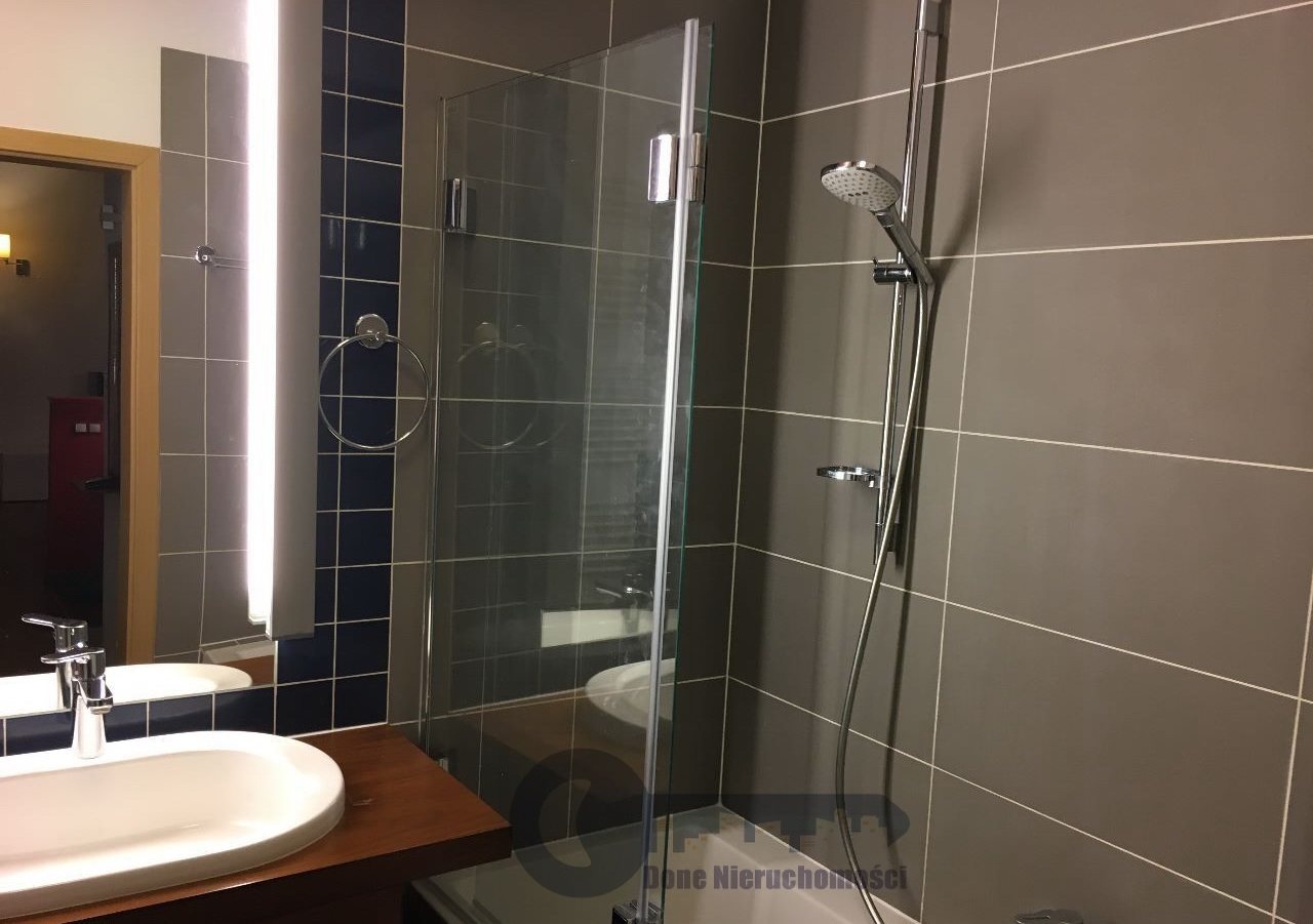 Przestronna łazienka z wanną i prysznicem, loggia.